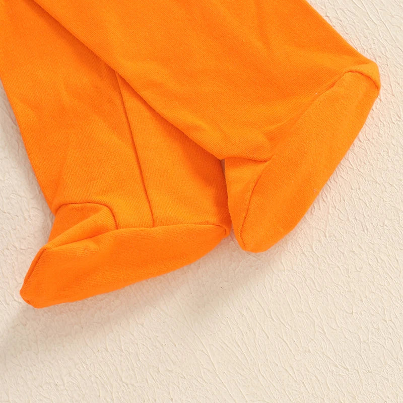 🎃 Adorable Halloween Outfit – Baby pumpkin print romper with matching stockings, perfect for newborns, infants, and toddlers.
